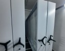 Спроектировали и произвели передвижные стеллажи для картин, адаптированные под условия заказчика. Чтобы разместить больше секций в небольшом пространстве, мы уменьшили глубину мобильной базы с 434 мм до 400 мм, что позволило сделать конструкцию более узкой. Для устойчивости таких стеллажей была добавлена система верхних антиопрокидывателей, надежно фиксирующих секции. Также были учтены потолочные балки — высота стеллажей была максимально увеличена, не мешая их размещению под конструктивными элементами помещения.