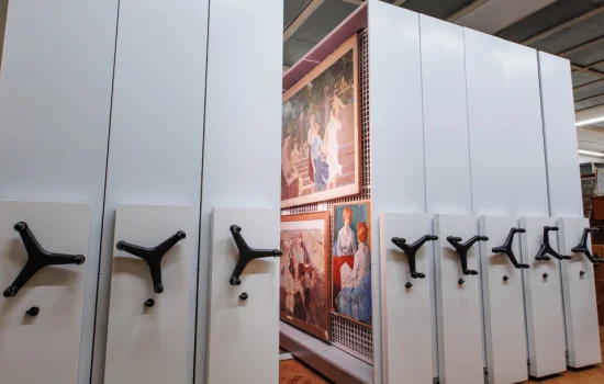 Стеллажи с сетками для размещения картин и других предметов живописи. Занимают меньше пространства, удобны в эксплуатации.
