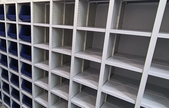 В секционных стеллажах удобно хранить разные предметы и материалы (канц. и хозтовары, печатную продукцию и т.п.).