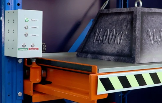 Платформы полного выдвижения большой нагрузки. Каждая может выдерживать до 1400 кг. Стеллажи для тяжелых грузов оснащены встроенным механизмом, предотвращающим одновременное выдвижение уровней. Их можно фиксировать в выдвинутом и задвинутом состоянии. Таль и коврики из резины для полок.